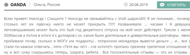 - Отзывы клиентов часто негативны, многие пользователи не смогли вывести деньги, что говорит о возможных убытках.