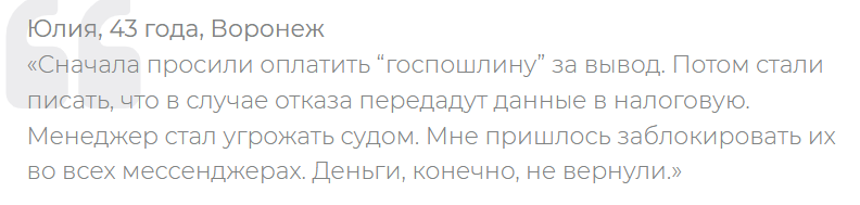 - служба поддержки работает шаблонами, требует комиссии за вывод, после чего замолкает;