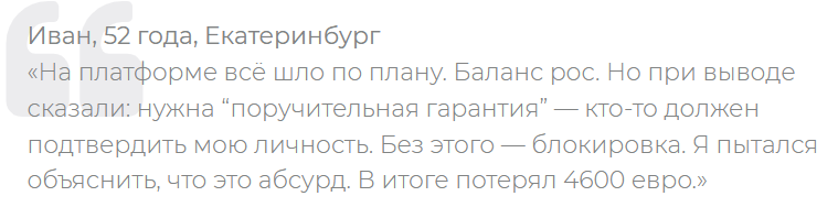 На первый взгляд сайт выглядит лаконично, и даже стильно. Команда заявляет о своем высоком статусе и рейтинге среди пользователей, при этом на моменте регистрации сайт уже начинает подвисать. Обычно у клиентов возникает вопрос: почему кнопка «вывести» пропадает именно после верификации? Это типичная задержка выплат, сигнал о можливой афере. Плюс домены свежие — запущены в этом году — никакие позиции в рейтингах, ни одна финансовая организация их не упоминает как надёжный брокер.