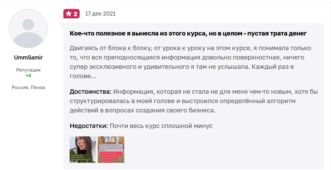 Но на тематических онлайн-ресурсах можно встретить и негативные фидбэки клиентов. Люди рассказывают, что предоставляемая информация носит базовый характер.