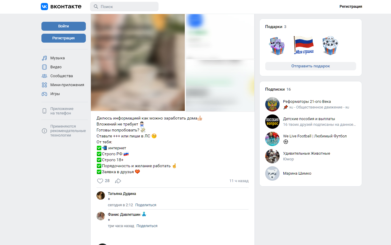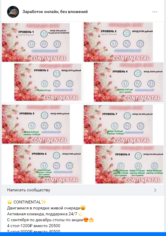 На каналах в VK продают участие в закрытом клубе онлайн заработка и гарантируют выигрыши. Обещают, что ставки по прогнозам обязательно выигрывают. Многие верят и начинают приглашать друзей, становясь участниками реферального развода на деньги.