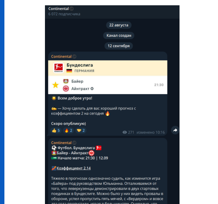 Пользователям предлагают делать ставки на матчи и другие спортивные события, за это выплачивают вознаграждения. Как и на других скам каналах в постах проекта очень много скринов с якобы выплатами и благодарностями от довольных клиентов.