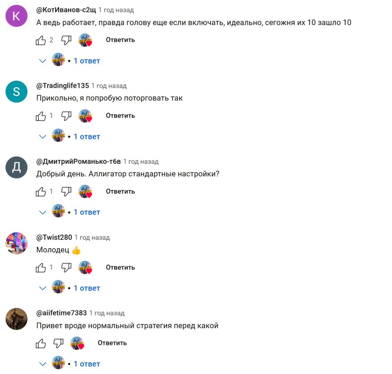 • ссылки на видео в Ютубе с примерами реальной торговли;