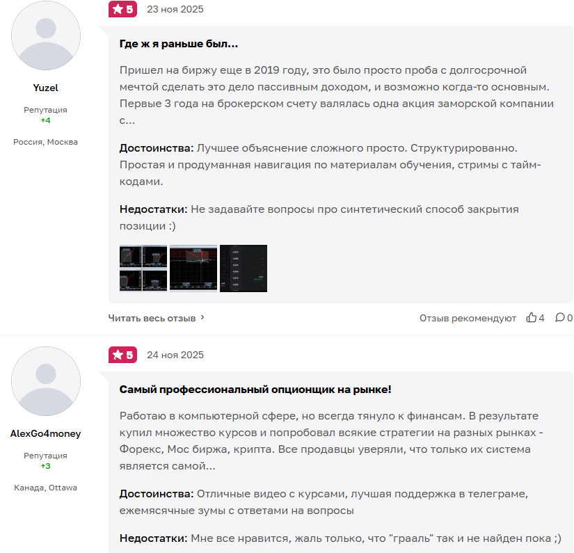 Если вы новичок в опционах, начните с бесплатных материалов. Опытным трейдерам базовый курс за 40 000 покажется пустой тратой денег. Закрытое сообщество может быть полезным для обмена опытом, но платить за вход 70 000 – сомнительное решение.