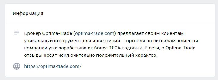 Optima Trade — мошенническая контора, основу которой образуют механизмы финансовой пирамиды. Мы не рекомендуем сотрудничать с представителями этой организации. Если вы работали с этим проектом, напишите в комментариях ваши впечатления.
