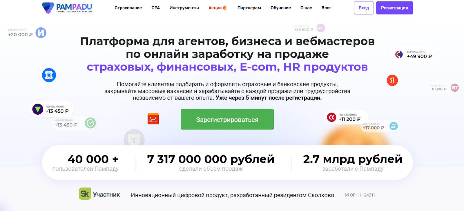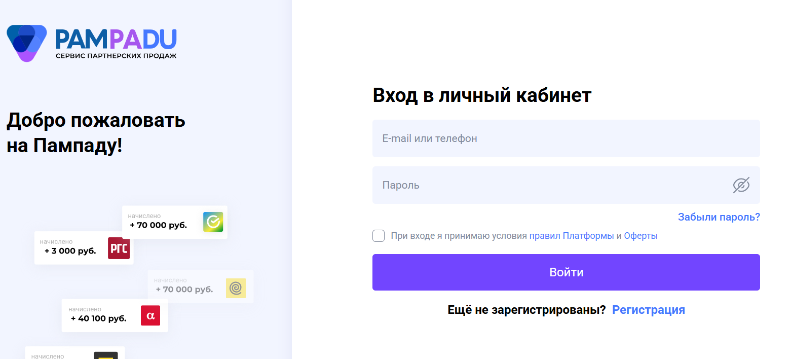 Пампаду – онлайн-площадка для получения доходов на продаже финансовых, страховых и других продуктов электронной коммерции. Партнерами площадки являются вебмастера, агенты, брокеры и иные пользователи. Проект обещает комиссию за умножение базы клиентов компаний. Далее в статье расскажем более детально что представляет собой заработок с сервисом Пампаду.