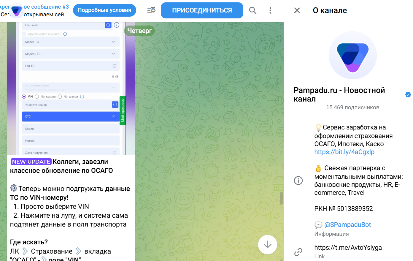 В Телеграмм паблике Pampadu ru – Новостной канал, @ avto yslyga, состоит свыше 15 тыс. участников. Записи просматривают не более 2 тыс. пользователей, что говорит о накрутке аудитории. Комментарии отключены и мнений партнеров о честности выплат комиссий или выгоде тех или иных партнерок здесь не узнать. Также у площадки Пампаду есть группа Вконтакте и Ютуб канал.