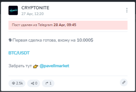 По отдельным сведениям в телеграм-канале «Павел Pump Cash» активно продвигается идея целесообразности получения доступа в платный VIP-чат от Pavellmarket. Стоимость 400 долларов США. Здесь обещают регулярно предоставлять торговые сигналы, размещать аналитику криптовалютного рынка и оказывать круглосуточную поддержку всем пользователям. Автор блога в личных сообщениях уверяет, что все подписчики получают гарантированные высокие прибыли, но никаких доказательств этому не приводит.