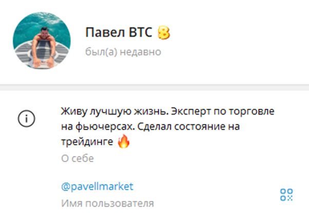 «Павел BTC» заявляет о себе, что является экспертом фьючерсного рынка. Настоящее имя и свой реальный опыт владелец канала не раскрывает. Судя по нику, зарабатывать предлагает на фьючерсах на биткоин. Стратегию, вероятно, описывает в своей закрытой группе или предлагает отдельное обучение в частном порядке. Сам инструмент предполагает заключение контракта на покупку или продажу актива в будущем по заранее оговоренной стоимости. Такие операции часто предлагаются с кредитным плечом, что с одной стороны дает возможность значительно увеличить прибыль в случае успеха, но с другой, существенно повышает риски. Опытные трейдеры применяют комбинированные инструменты и адаптируют их к медвежьим или бычьим условиям в зависимости от ожиданий. Какой подход используется в нашем случае, из доступной информации понять невозможно.