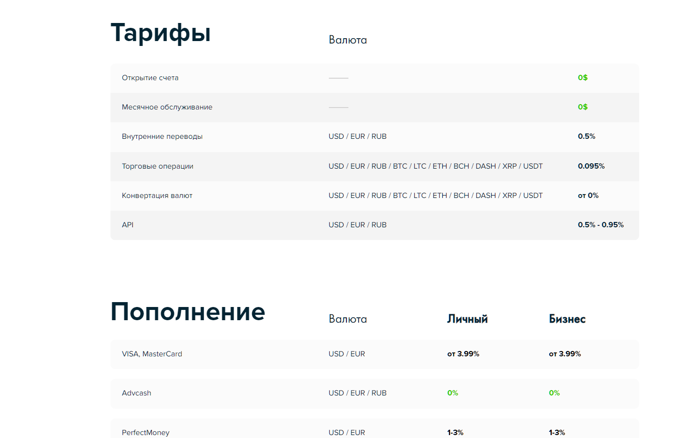Ввод и вывод бесплатный для большинства криптовалют и сумм. Комиссия с Payeer за перевод на карту Visa или MasterCard 3.99% за ввод и 1.99% за вывод.