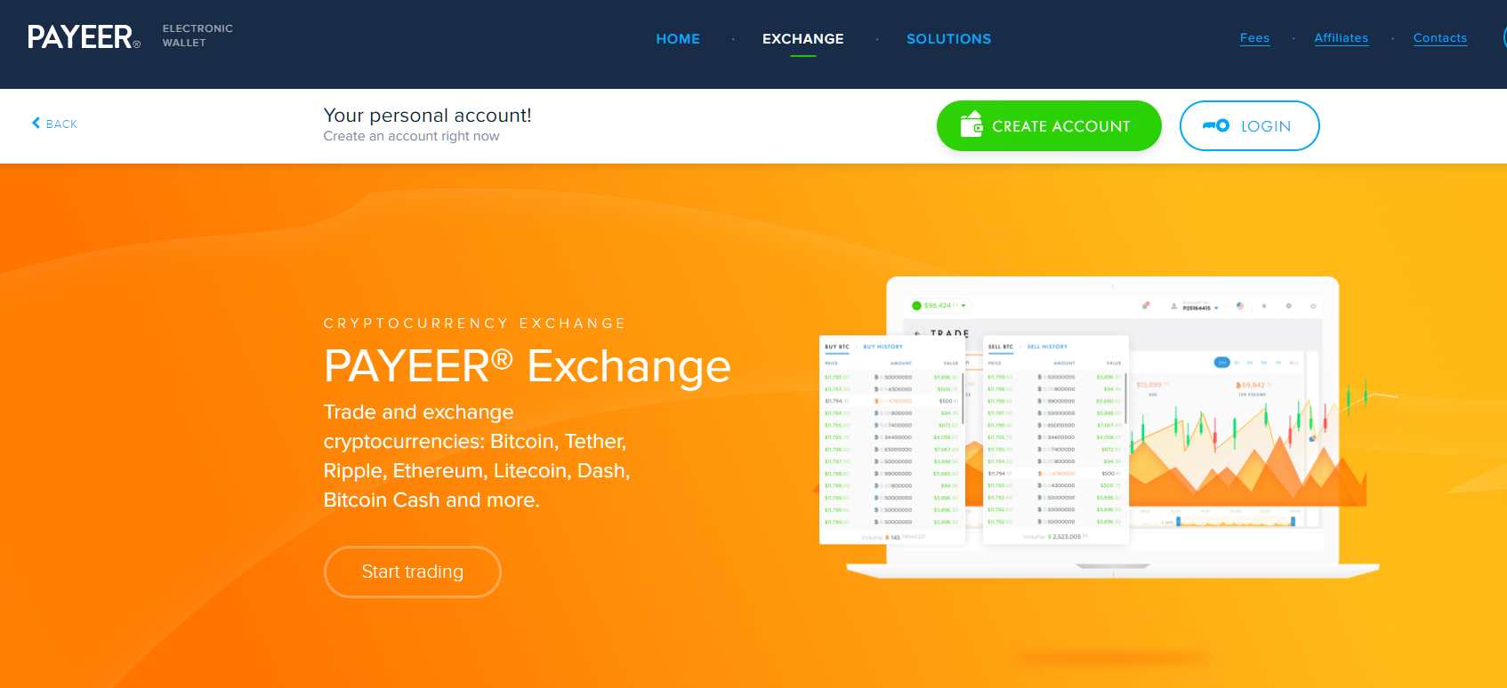 - «Обмен» — для торговли криптовалютами и фиатными валютами Payeer.