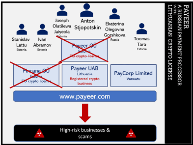 В настоящее время Payeer работает через компанию Payeer UAB в Литве, зарегистрированную как поставщик криптовалютных услуг. Директором литовского предприятия является россиянка Екатерина Олеговна Горшкова.