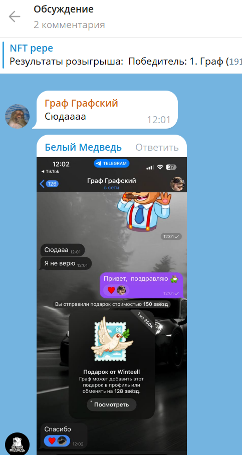 В публикациях на канале с адресом NftPepepe автор выкладывает изображения с новыми интересными подарками, а также говорит о значимых покупках от пользователей на тысячи Ton. Помимо этого, владелец устраивает конкурсы, где разыгрывает звезды и подарки, а для этого нужно только подписаться.