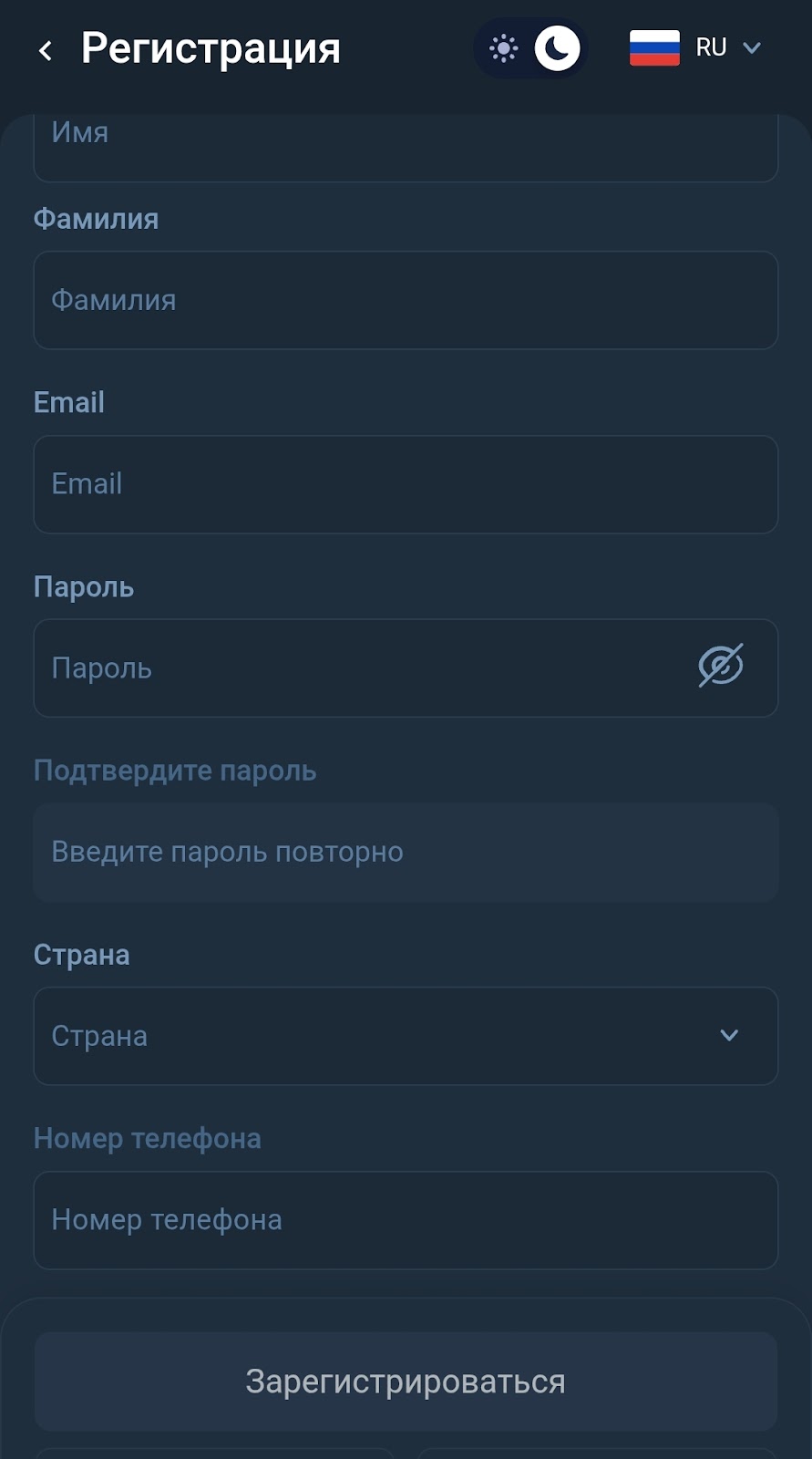 Для регистрации на проекте пользователям необходимо заполнить следующие поля: