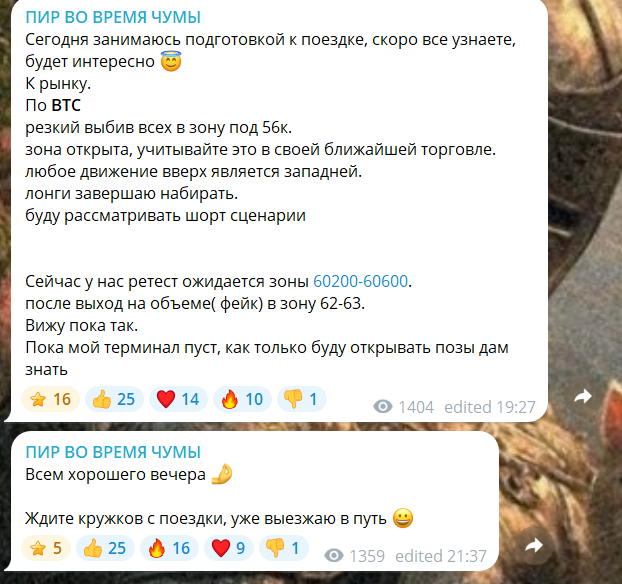 Основная цель канала «Пир Во Время Чумы» — делиться опытом и помогать подписчикам избегать рисков, которые сам Максим совершал в начале пути. Он публикует еженедельные обзоры рынка, разбирает тренды и прогнозирует движение цен на криптовалюты, демонстрируя скриншоты сделок.