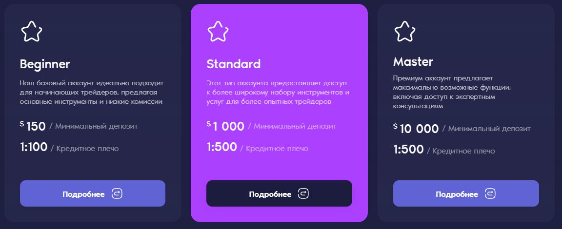 - Депозиты. Относительно небольшой минимальный размер депозита – 150 USD. Он становится заманухой для начинающих, тех, у кого не очень большой бюджет. При этом возможность пользоваться плечом х100 обещает возможность быстро заработать. Но в этом и заключается проблема. Такое большое плечо редко дают непрофессионалам, так как риск слить весь депозит с 1 неудачной сделки слишком велик.