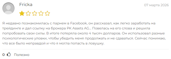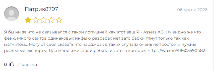 Оставьте Ваш отзыв о работе с PK Assets AG
