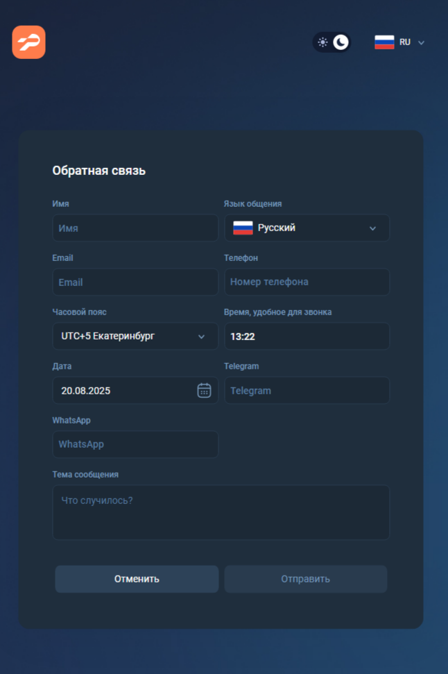 Для связи с поддержкой Pkv Rin Com клиенту нужно написать свои личные данные, язык общения, удобную дату и время для связи, а также ссылки на свои аккаунты в мессенджерах. Плюс, здесь можно сразу описать свою проблему или задать вопрос.