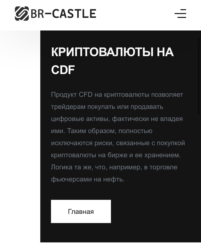 Вероятно, получить более объемную информацию по сотрудничеству можно после создания личного кабинета.Интересный момент удалось обнаружить во время анализа сайта. В одном из блоков раздела с криптовалютами найдена опечатка: CDF вместо CFD.