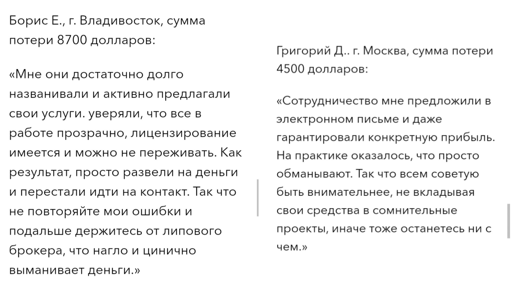 По словам клиентов, менеджера навязчиво предлагают услуги, однако во время вывода денег происходят проблемы. Техподдержка перестает выходить на связь после внесенных средств.