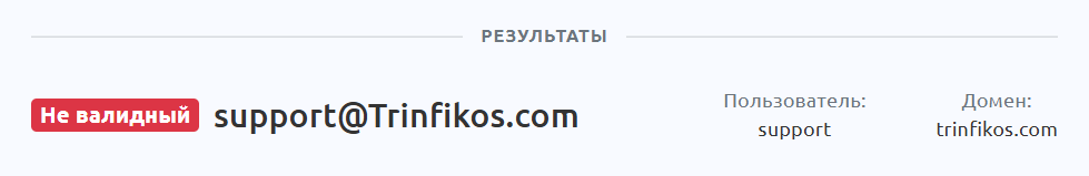 Но при проверке электронного адреса можно узнать, что он не работающий. Он не валидный и при отправке писем на него высвечивается ошибка.