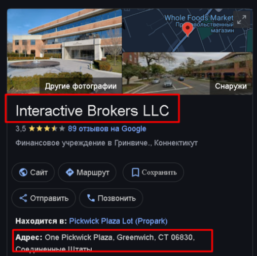 Однако по этому адресу расположена другая организация под названием Interactive Brokers.