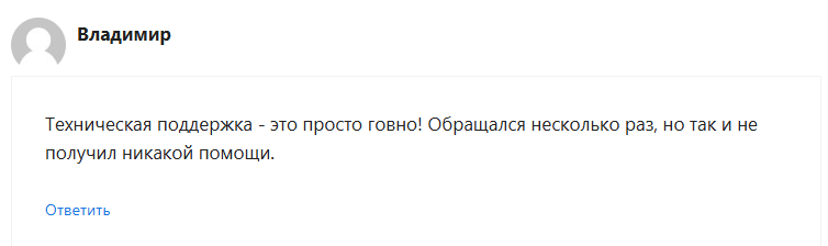 - Недостаточный уровень сервиса. Многие запросы в техподдержку игнорируются. Нечеткие правила работы. Отсутствие данных о лицензиях и недостаточная прозрачность в вопросах регулирования деятельности брокера представляют собой опасность.