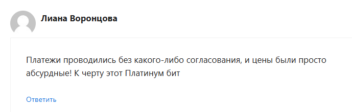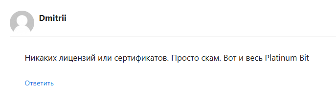 Изучение мнений о Platinum Bin говорит о том, что компания не вызывает доверия. 85% из 50 комментариев — отрицательные. Основная сложность — вывод средств с платформы. Это приводит к обвинениям в мошенничестве и фейковой работе.