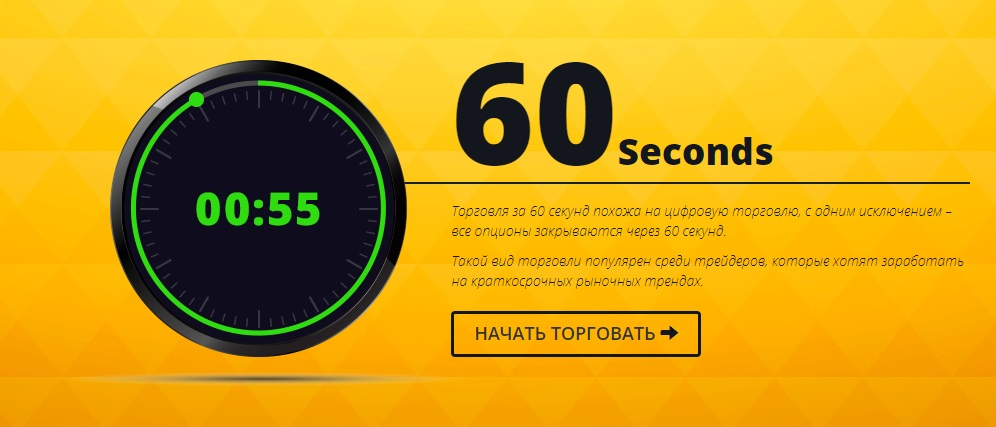 Брокер PlatinumBin специализируется на шестидесятисекундных бинарных опционах. Нужно определить, куда пойдет цена: вверх или вниз. Работает единый счет. Рынки: