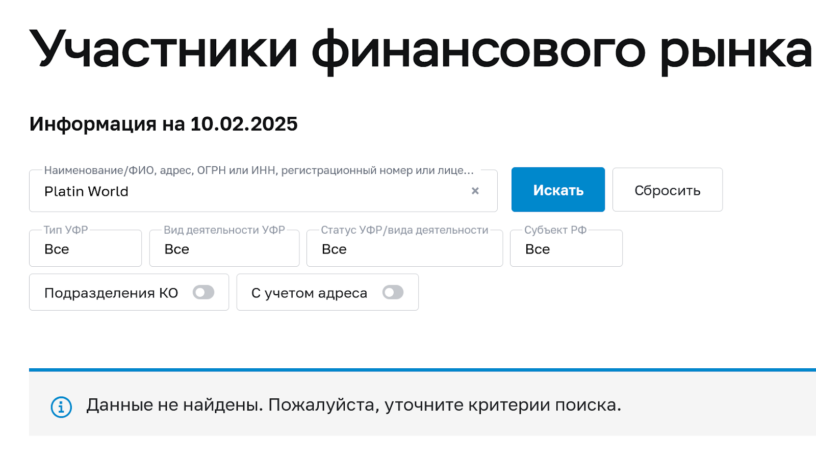 Мы не рекомендуем инвестиционный проект «Платин Ворлд».