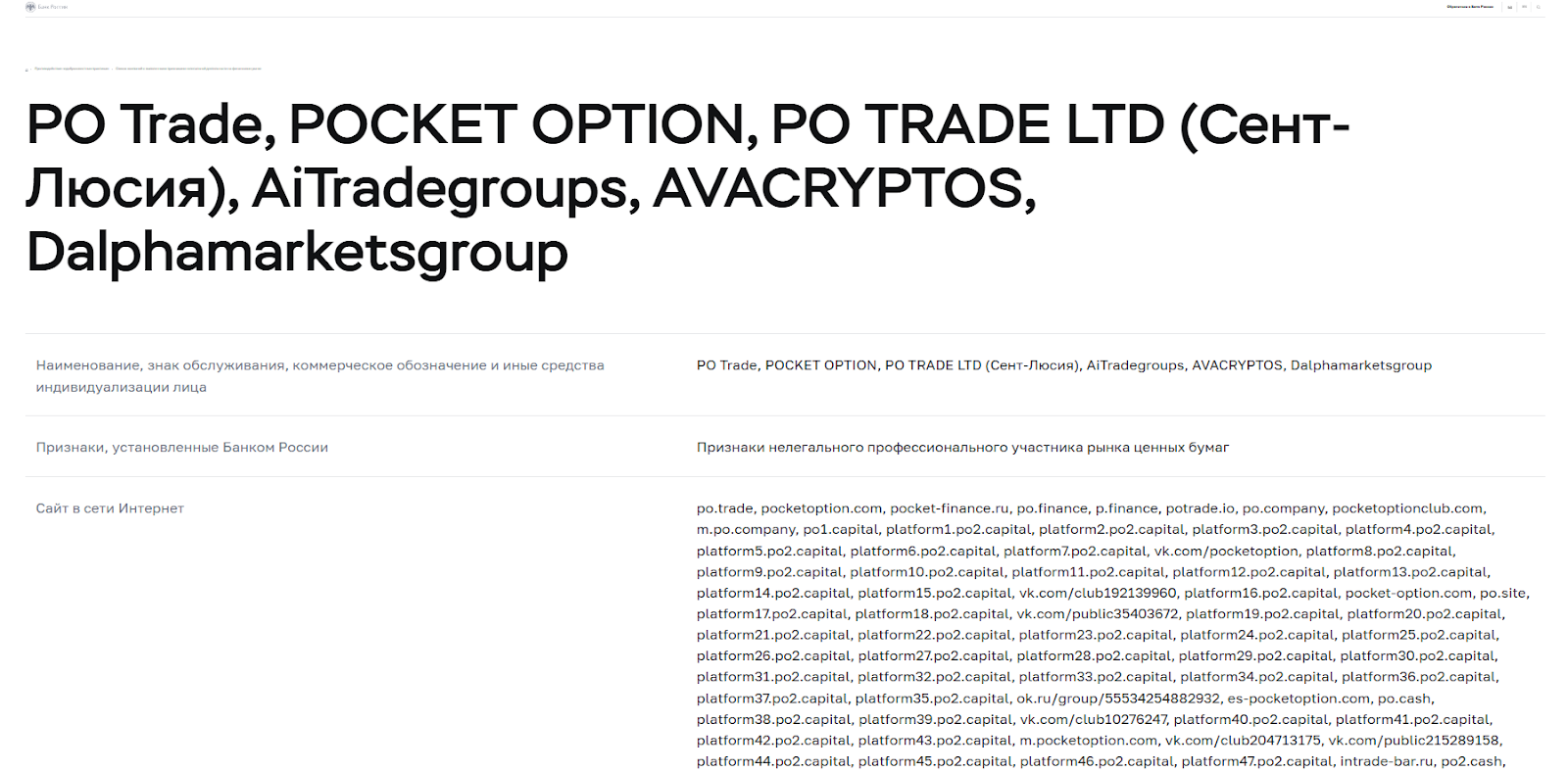 Главным сайтом компании является pocketoption com, но для пользователей используются разные домены, с целью переадресации – например, m po spd com и др.