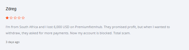 На англоязычных и русскоязычных форумах можно найти отдельные отзывы о Premiumfxtmhub live, и в большинстве случаев они несут негативный характер. Основные претензии к брокеру крутятся вокруг проблем с выводом: как только пользователь закинул депозит, менеджеры внезапно «испаряются» — начинают игнорировать заявки и при этом активно уговаривают внести еще денег. Подобное поведение, как правило, характерно для брокеров-однодневок, работающих по схеме агрессивного привлечения и последующего слива клиента.