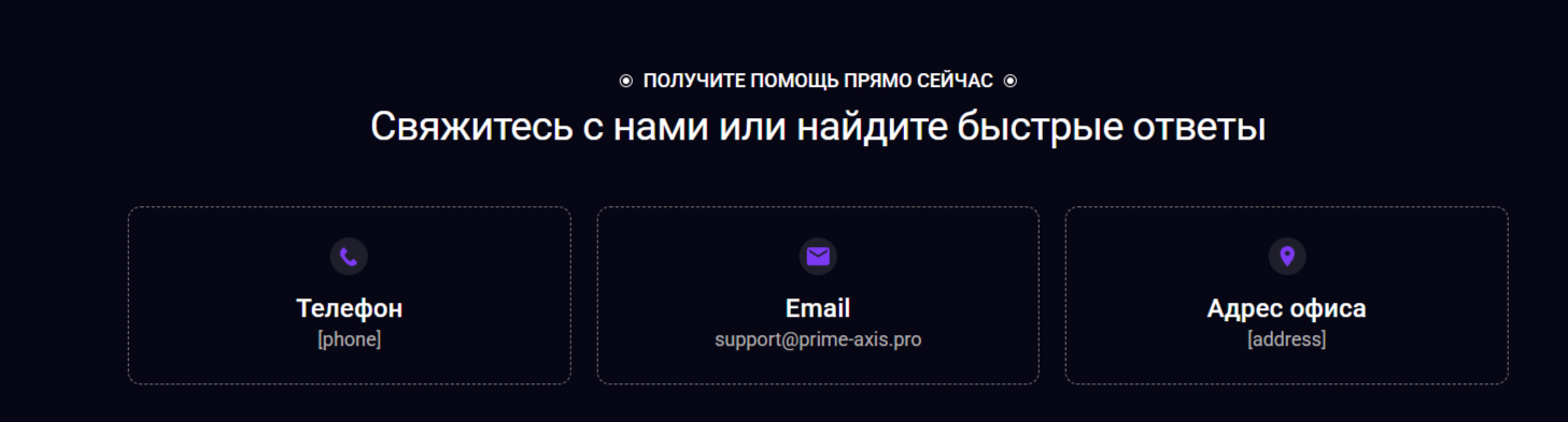 Услугами брокерского портала клиенты могут пользоваться круглосуточно. Служба поддержки посредника также работает в режиме 24/7. Для связи с саппортом предназначен имейл support prime axis pro. Телефон для связи или адрес офиса брокером не предоставляются.