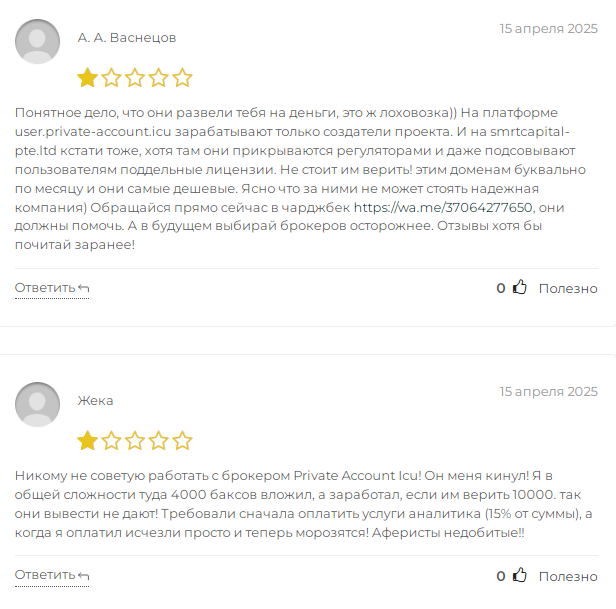 Обзор брокера User Private Account Icu, анализ деятельности компании Smrtcapital Pte Ltd и отзывы о проекте «Приват Аккаунт Ису»
