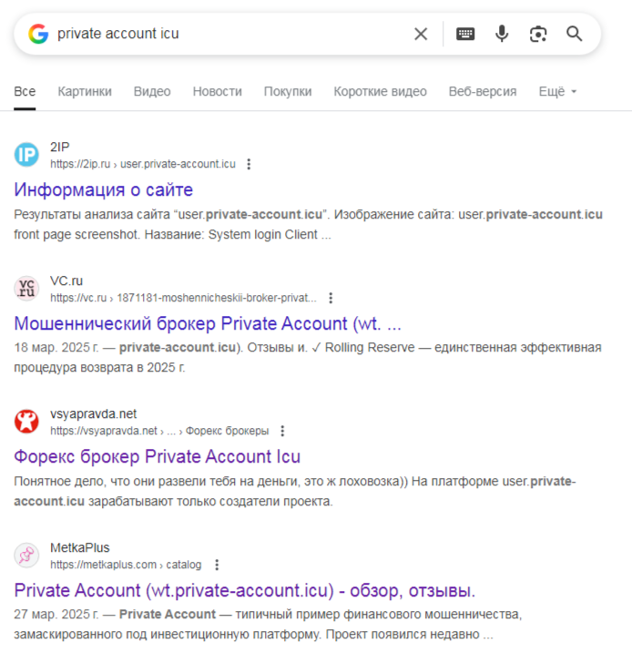 По итогу получается, что компания User Private Account Icu не имеет популярности и отзывов. Из-за этого нет уверенности, что здесь вообще можно было воспользоваться финансовыми услугами.