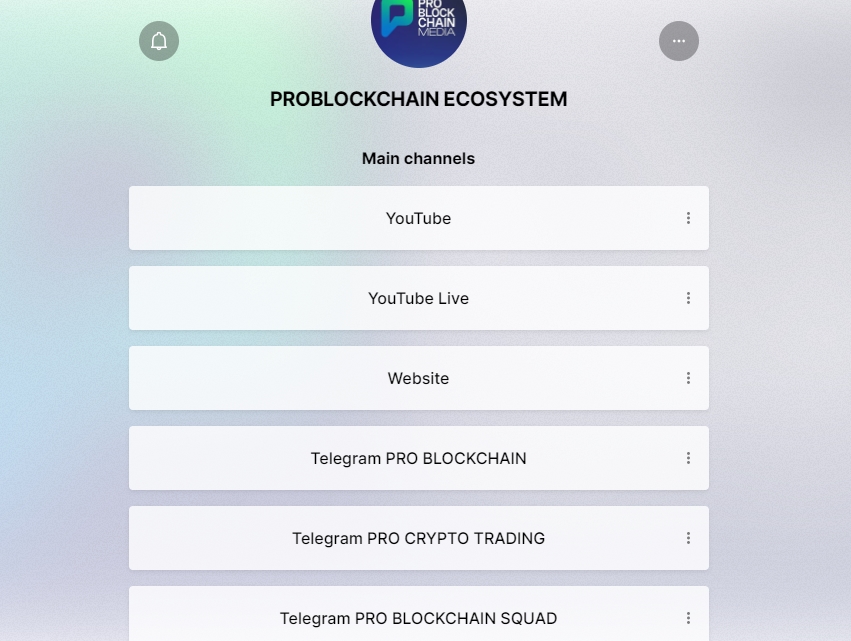 Ещё одна ссылка с канала ведёт на linktr.ee problockchain – одностраничник со списком ссылок, в том числе официальным сайтом pro blockchain com.