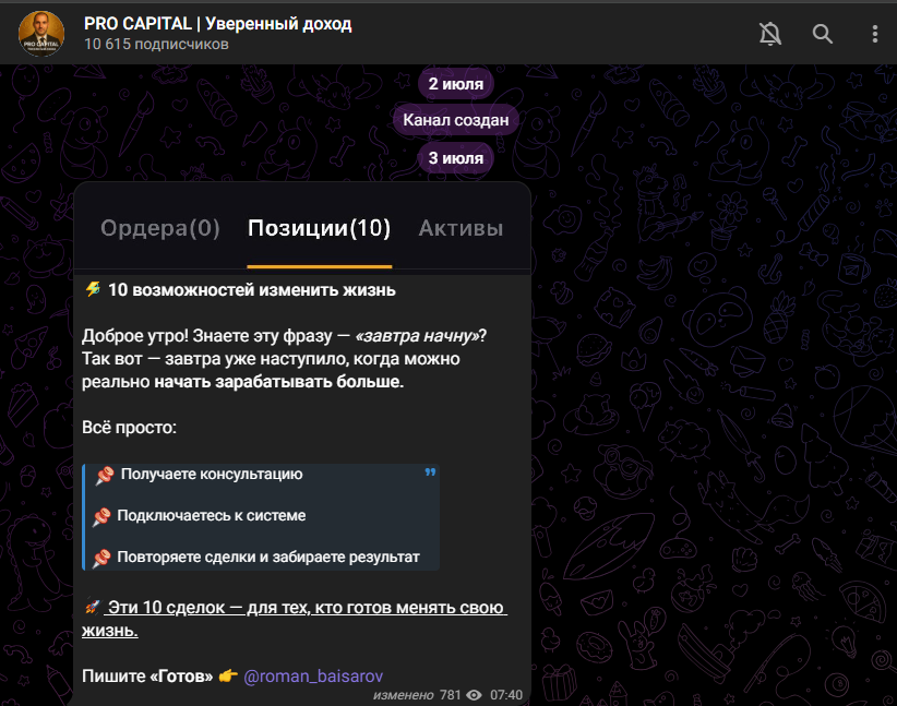 Анализ профессиональной деятельности трейдера Романа Байсарова: отзывы о заработке криптовалюты с Roman Baisarov, обзор телеграмм-канала «Pro Capital | Уверенный доход»