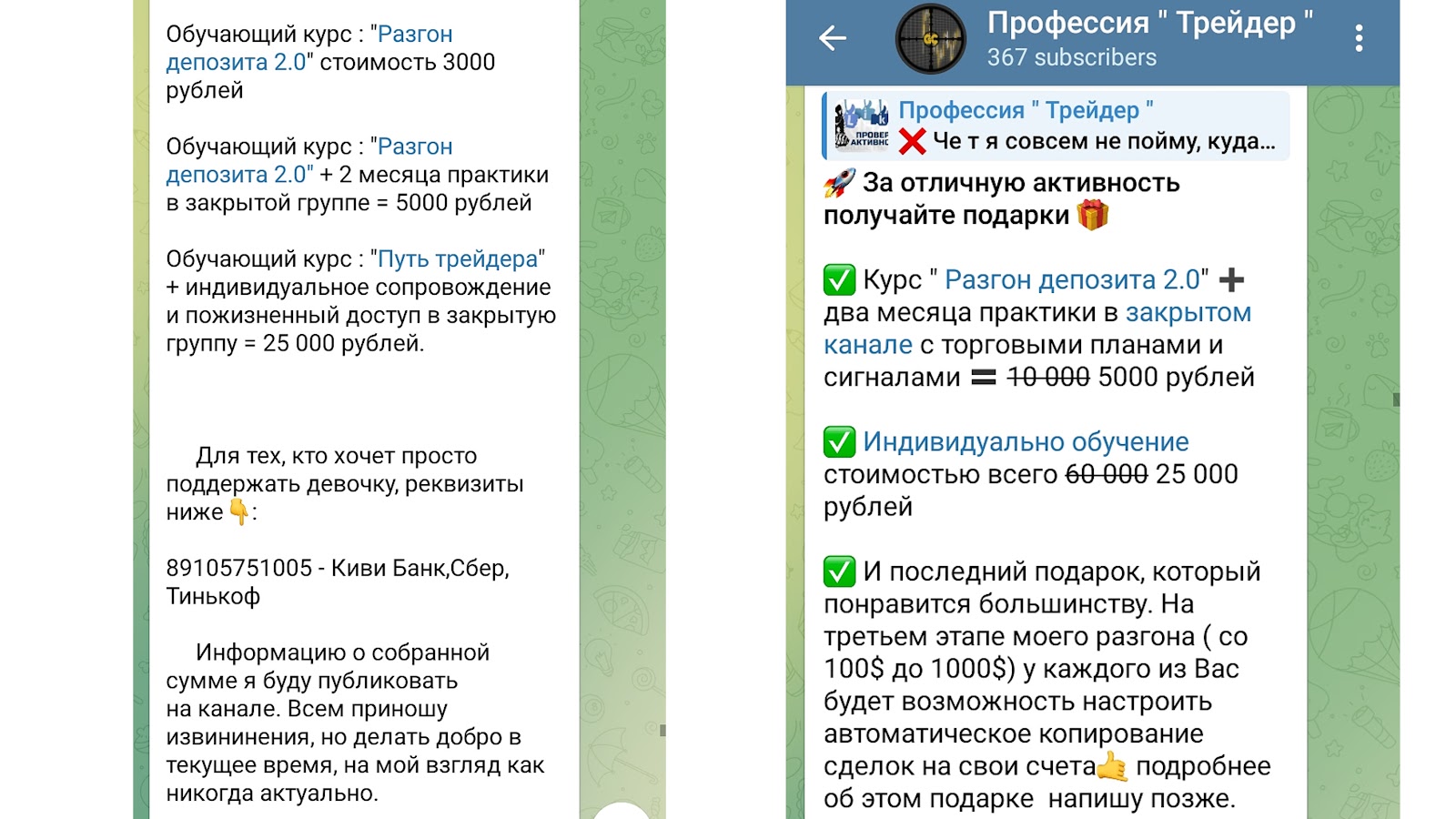• “Путь трейдера”, а также индивидуальное сопровождение. Услуга стоит 25 000 рублей.