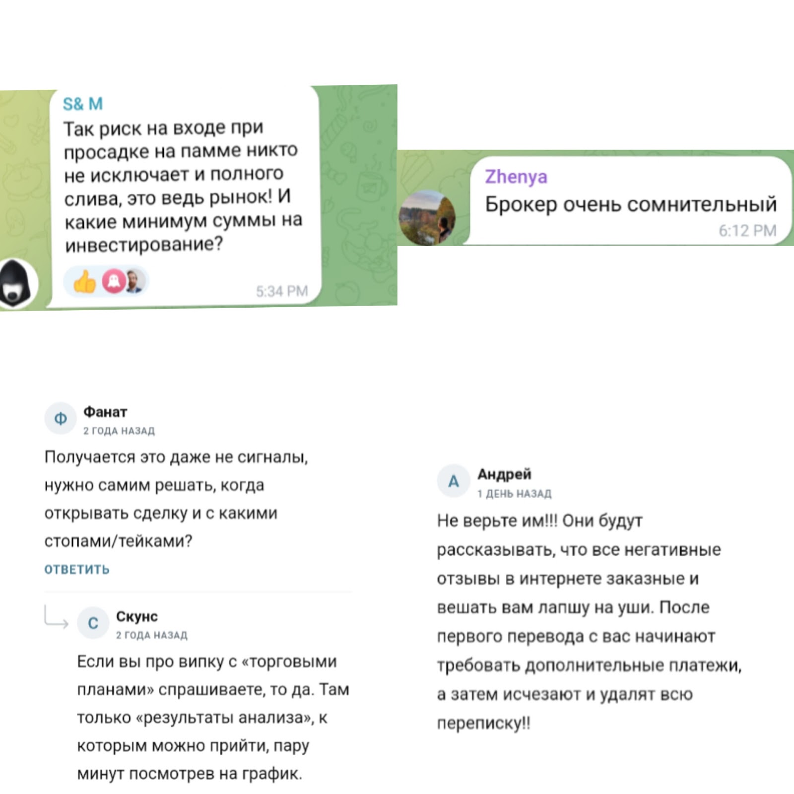 • рекомендации с канала могут привести к сливу депозитов.