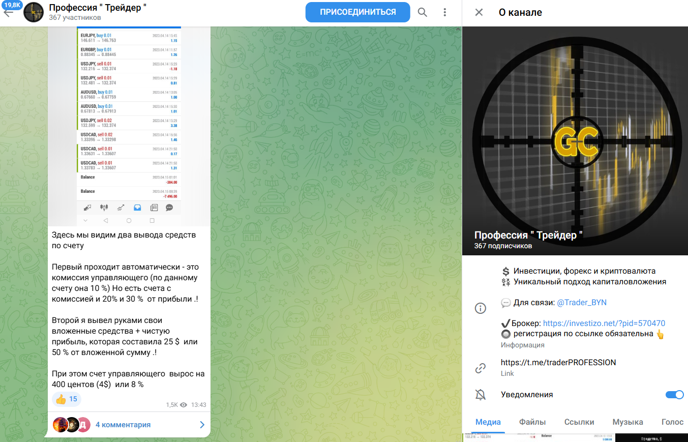 Канал Профессия Трейдер отзывы получил неоднозначные. Сообщество посвящено аналитике фондового рынка и мыслям по трейдингу. Из платных услуг пользователям предложены обучающие курсы по разгону депозита, трейдингу, а еще закрытый канал с сигналами и торговым планом. Помимо этого, админ предоставляет копитрейдинг, и в новой статье мы расскажем о проекте детальнее.