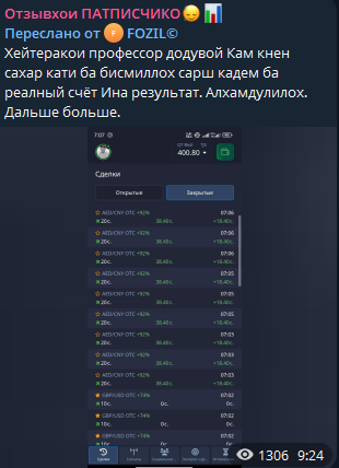 Поиск информации в сети о «Professor» дал нулевой результат. В интернете нет ни одного отзыва о трейдере Усмоне. Это очень странно для проекта с 39-тысячной аудиторией.