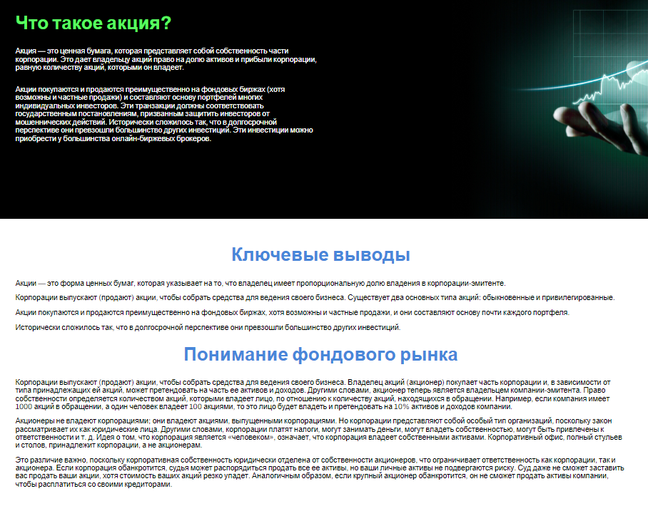 На сайте имеется информация о том, что торговать пользователи могут различными активами. Например, такими как акции, криптовалюты, металлы, индексы. Также есть возможность торговли на рынке Форекс.