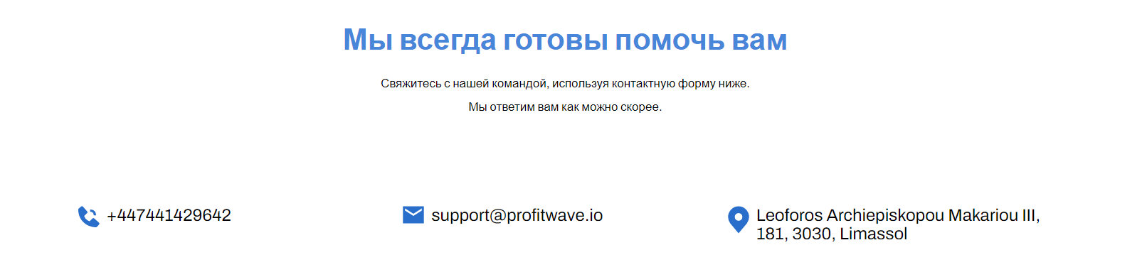 - Отсутствие на сайте полной и развернутой информации о нюансах торговли на Profitwave Cc. Это может быть свидетельством того, что брокер скрывает много сведений от своих клиентов.