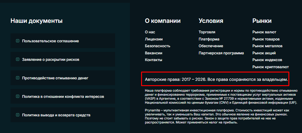 Prynamite co – брокерская площадка для торговли индексами и акциями, криптовалютой и валютой, металлами и сырьем. Неизвестные разработчики позиционируют сервис как надежного партнера для уверенного роста. Руководители компании хвастаются международным признанием платформы и высокой скоростной инфраструктурой. В обзоре расскажем, можно ли верить в презентацию Принамит.