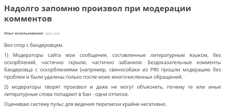 Отрицательные отзывы критикуют жесткие правила модерации и утверждают, что ее проходят редкие статьи. При обращении к техподдержке пользователи сталкиваются с грубостью. В результате статьи не уходят в тираже и не приносят ожидаемый доход.