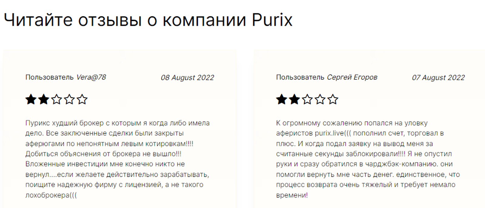 К тому же, сайт Purix был удален из сети и воспользоваться услугами брокера невозможно. Не исключено, что деятельность проекта была завершена из-за жалоб пользователей, так как отзывы на Purix негативные.