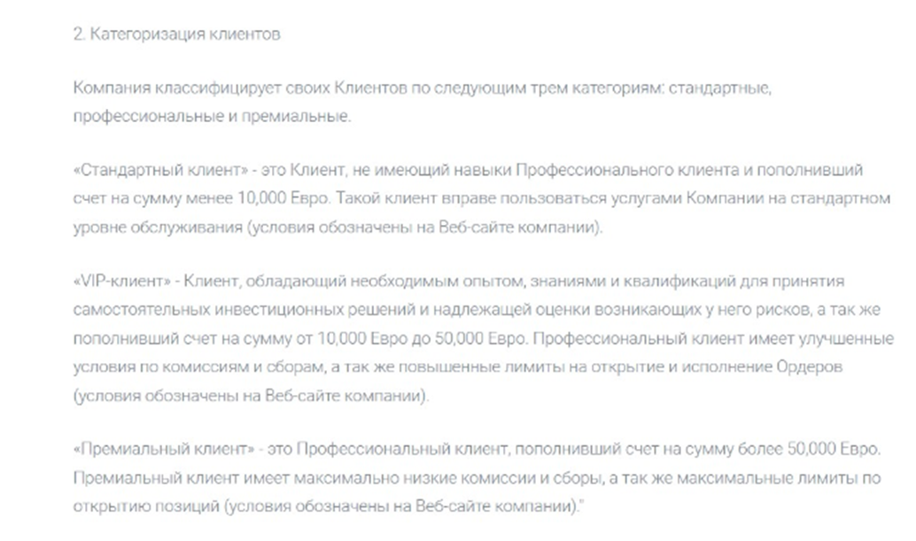 - Клиенты уровня «премиум». Депозит от 50 000 евро. Для них подготовлены особые условия. Это самые низкие комиссии и самое высокое кредитное плечо.