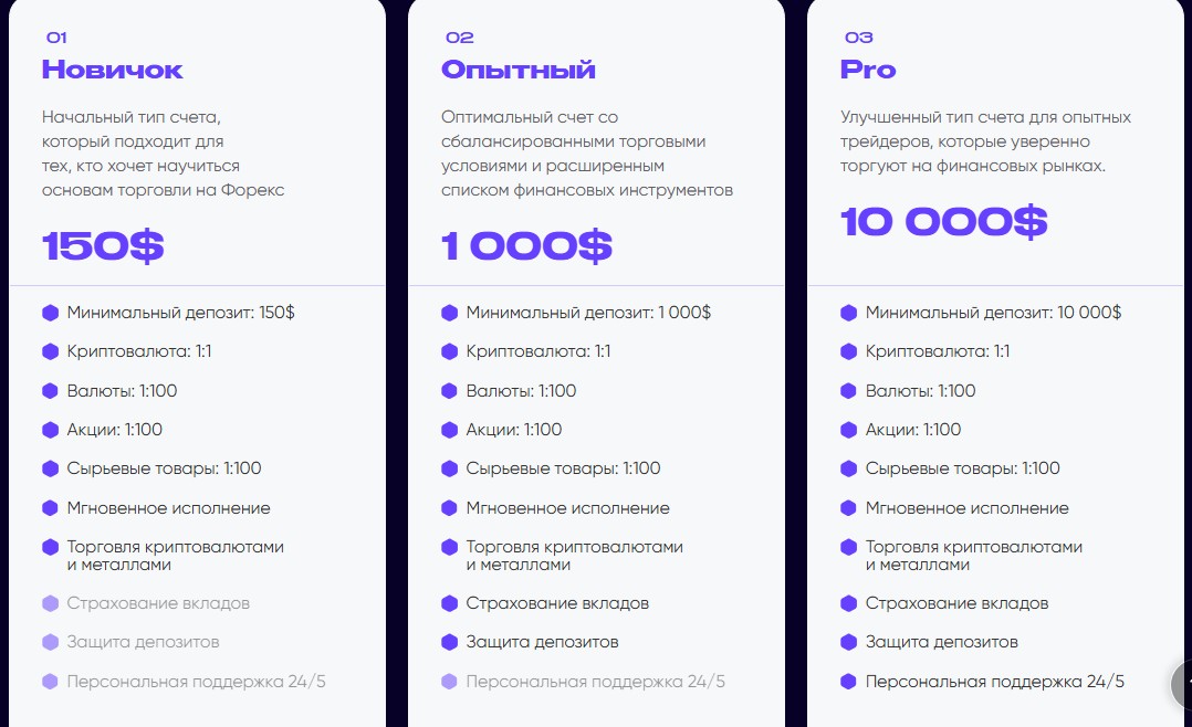 1. Новичок для трейдеров, начинающих путь на Форекс. Стартовые инвестиции от 150$. Гарантированно мгновенное исполнение ордеров.
