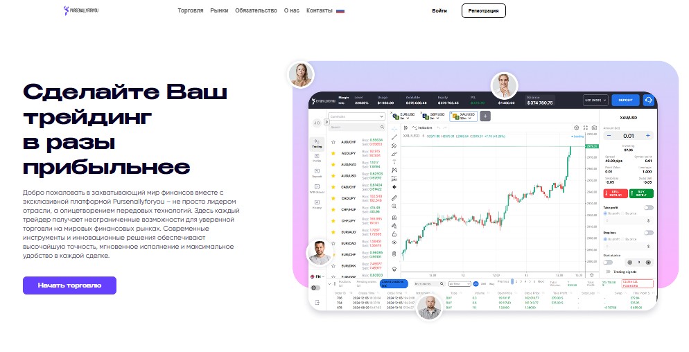 Брокерская организация Pursenallyforyou работает с 2015 года. На международный рынок вышла в 2017. По крайней мере, так указано в разделе о компании. Однако при проверке домена выясняется, что сайт зарегистрирован в 2024. Ни информации о владельцах, ни лицензий, подтверждающих регулирование, найти не удалось. Анонимные создатели платформы обещает следующие преимущества:
