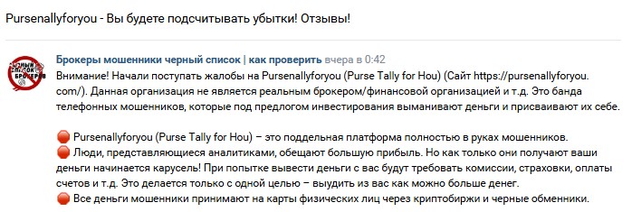 Мы проанализировали работу брокера Pursenallyforyou. В итоге считаем, что сотрудничество с ним связано с рисками. Мы не можем рекомендовать данного посредника по следующим причинам: